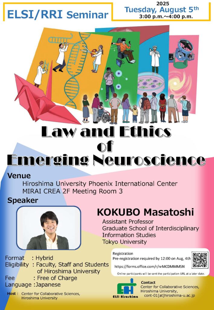 【Aug. 5, 2025/Hybrid/Pre-Registration Required】ELSI/RRI Seminar, “Law and Ethics of Emerging Neuroscience,” Phoenix International Center, MIRAI CREA, Hiroshima University