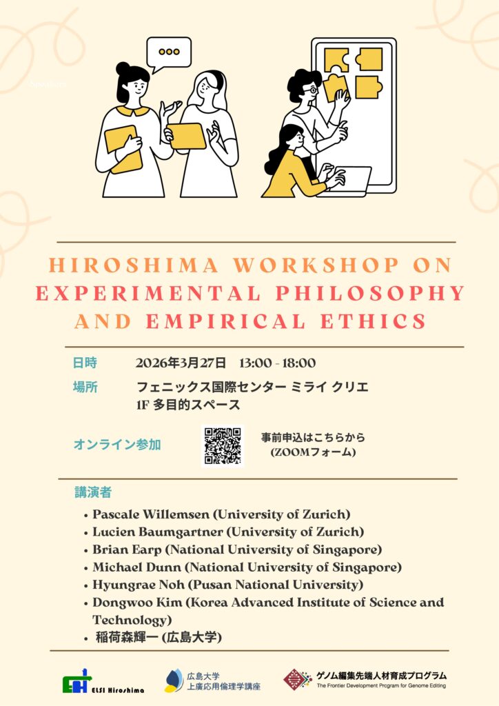 本国際ワークショップでは、欧州、東アジア、南太平洋の実験哲学と経験的倫理学をリードする代表的な研究者と、新進の研究者が一堂に会します。本ワークショップ内での発表と議論を通じて、参加者は理論的・実践的観点から現代の倫理的課題を検討します。本ワークショップでは、複雑な道徳的課題に対する理解を深めるとともに、急速に発展する実験哲学と経験的倫理学の分野における地域横断的なコラボレーションを促進することを目的としています。